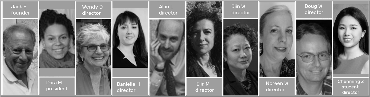 Board Members: Wendy Dorf, Jack Eichenbaum, Amy Jeu, Juliana Maanty, Dara Mendeloff, Jiin Wen, Noreen Whysel, Doug Williamson